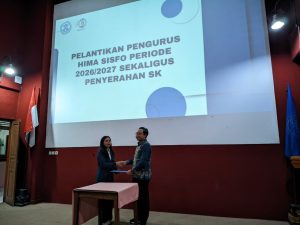 [KOTA, 02 Februari 2026] – Program Studi Sistem Informasi kembali mencatatkan momen penting dalam perjalanan organisasinya. Pada Selasa (02/02), telah dilaksanakan prosesi pelantikan pengurus Himpunan Mahasiswa Program Studi (HMPS) Sistem Informasi untuk masa bakti 2026/2027.